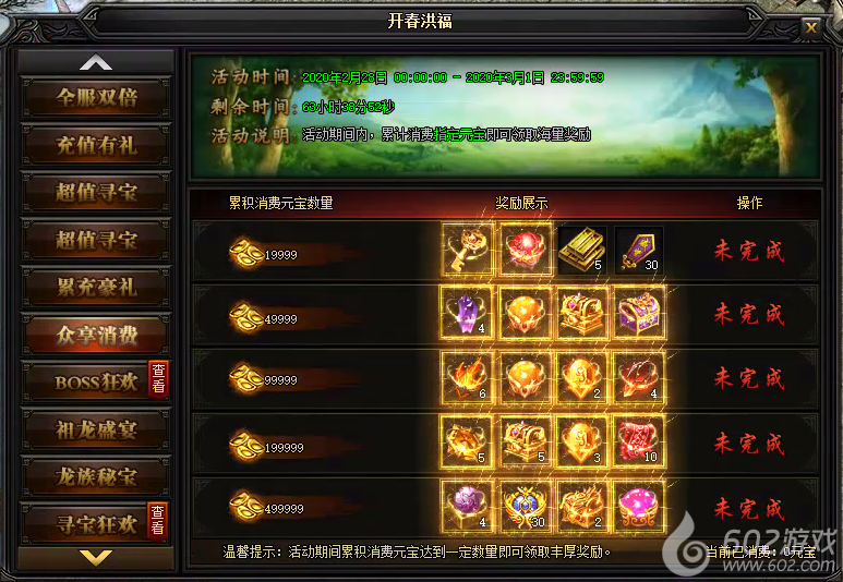 活动说明 : 活动期间内,累计消费指定元宝即可领取海量奖励