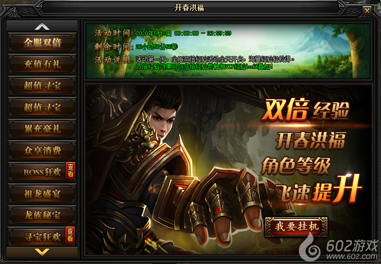 活动说明:活动第一天,全服双倍经验活动全天开启,海量经验轻松得。双倍经验效果可与多倍经验卷轴和VIP经验buff叠加!